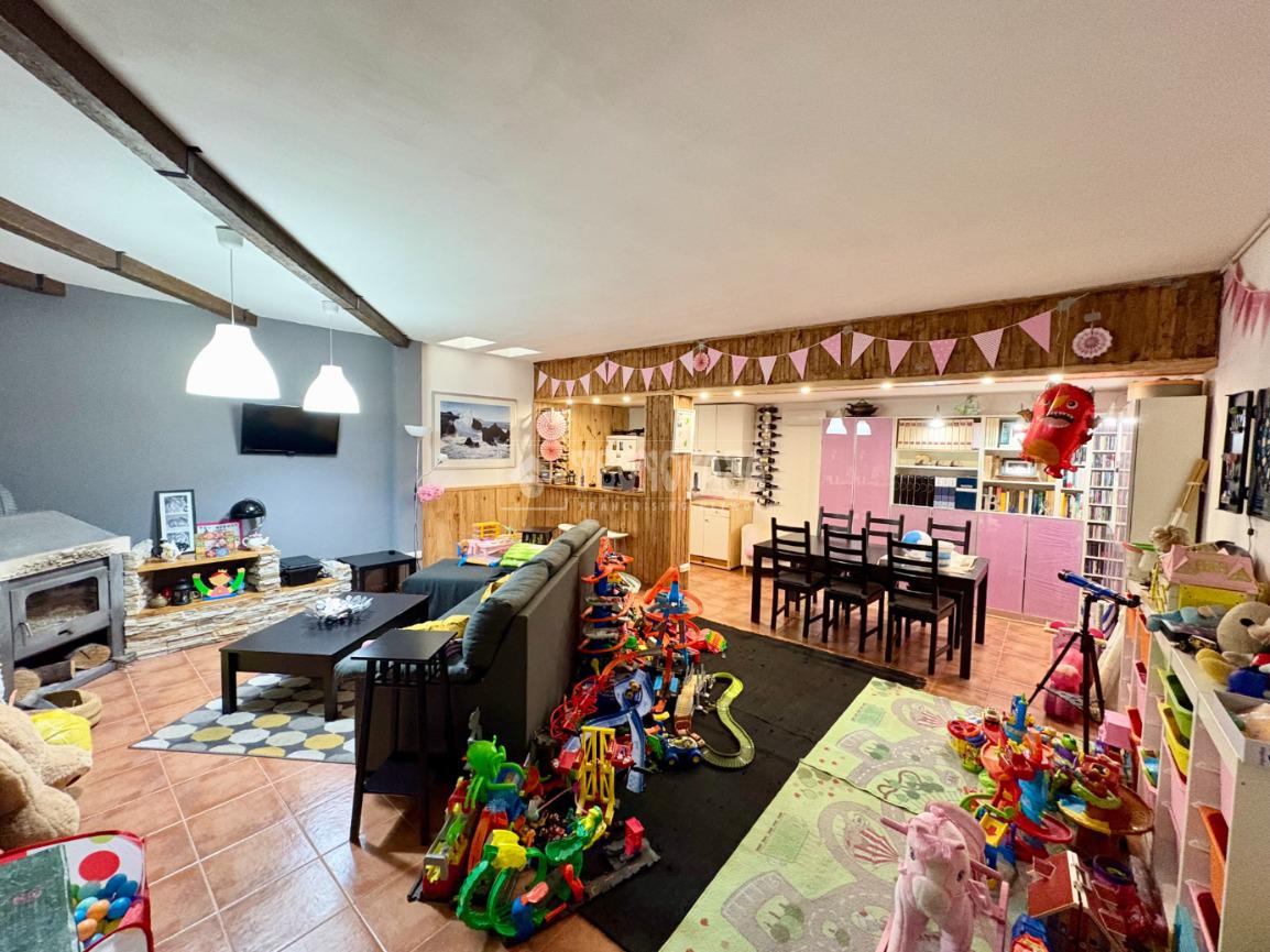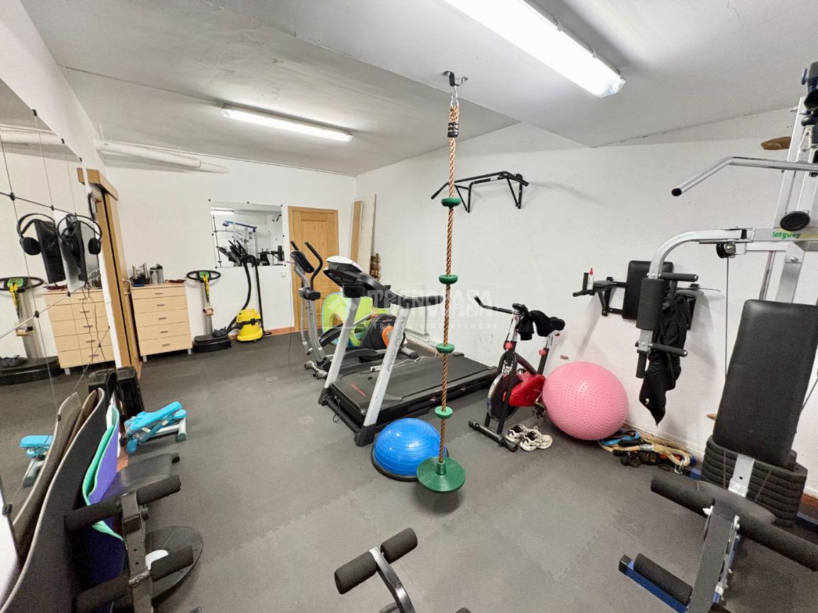 Se compone de 105 m2 en los que nos encontramos con un amplio recibidor que separa dos estancias, un amplio salon con chimenea de leña y una cocina/bar destinado a zona social, en la otra estancia nos encontramos con un gimnasio completo con dos cuartos mas destinados a trastero y taller.