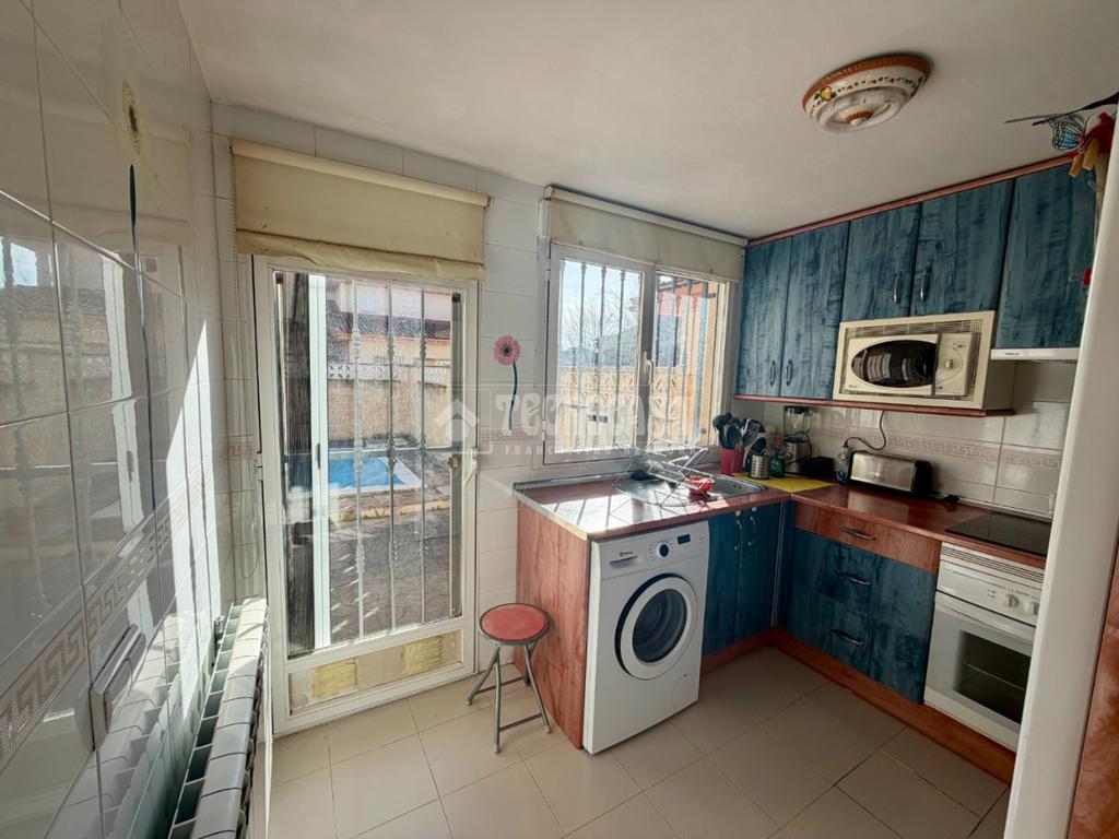 Moderna cocina independiente con acceso directo al patio trasero perfecto para disfrutar al aire libre, aseo de cortesía y despensa para mayor comodidad, 3 Dormitotios con armarios empotrados en cada estancia y un cuarto de baño completo con bañera.